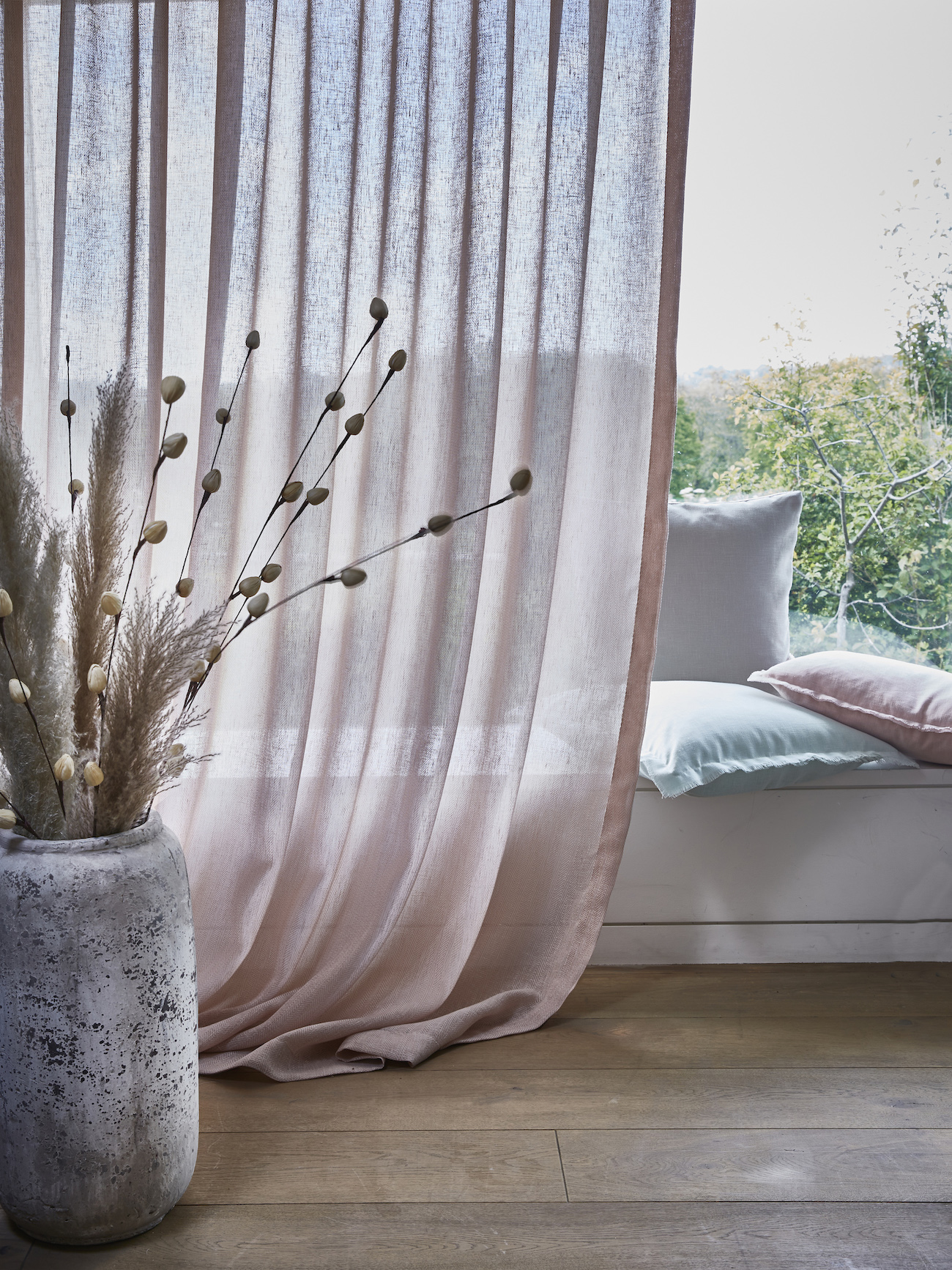 Stoffe prägen die Atmosphäre eines Raumes: Sie filtern Licht, schaffen Geborgenheit und verbinden Innenraum und Aussenwelt. Gemeinsam finden wir Stoffe und Systeme, die zu Architektur, Möblierung und Boden passen.